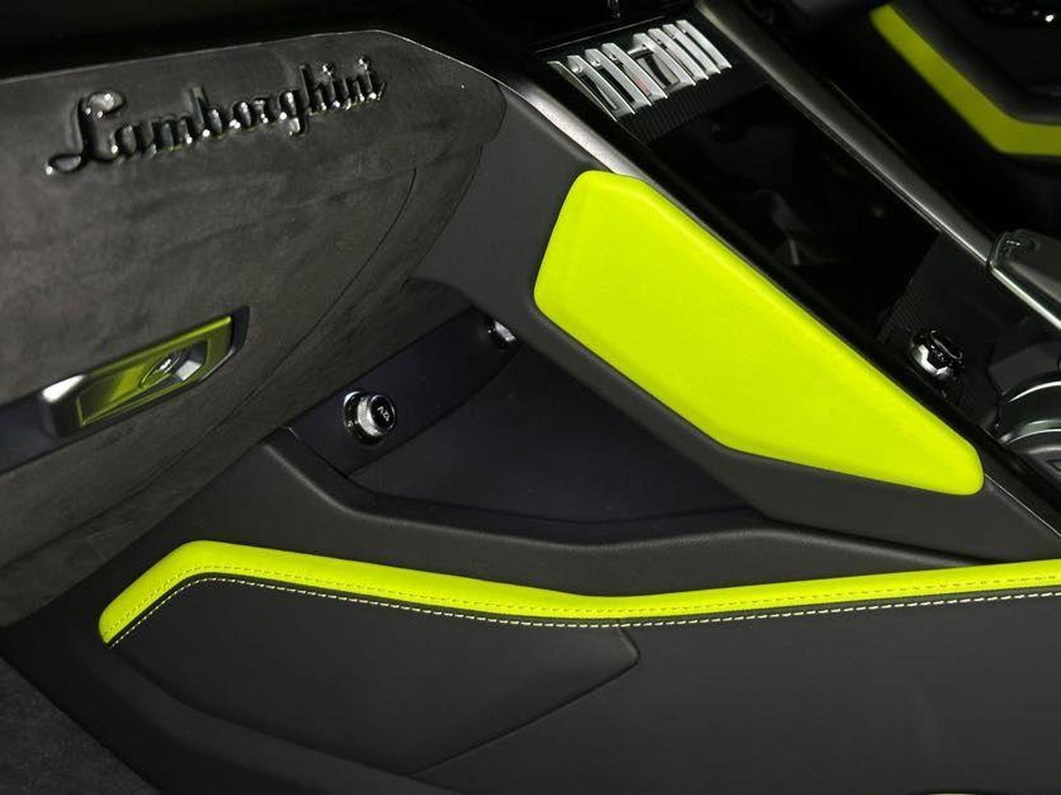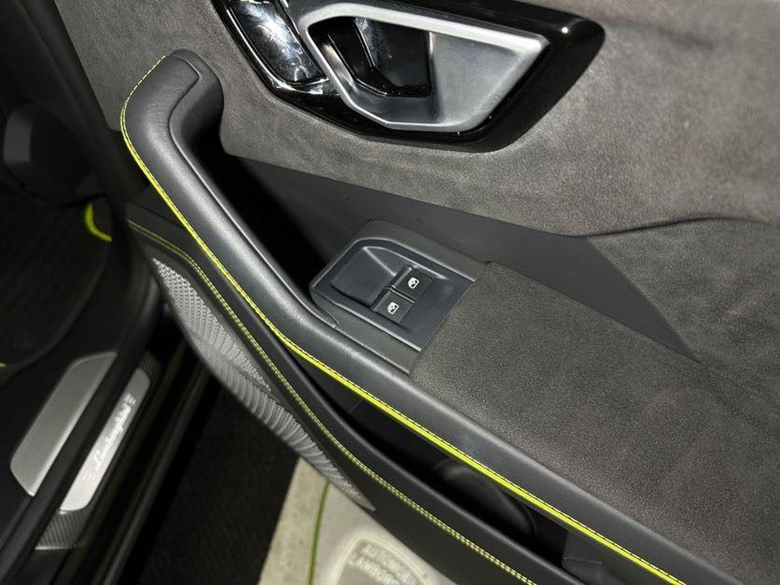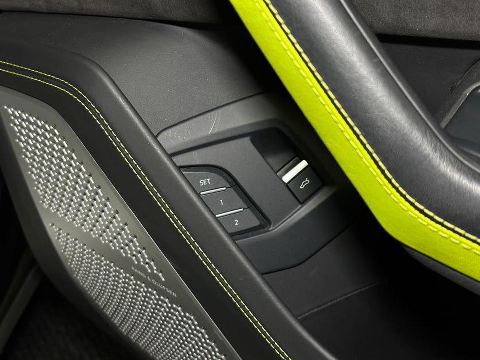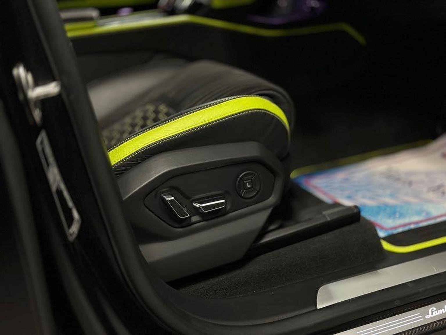 Cutting-edge technology includes a 3D Bang & Olufsen sound system for an immersive audio experience. A panoramic roof floods the cabin with natural light, and the park assistance package ensures effortless manoeuvring. Lamborghini puddle lights and a tracker provide added security.