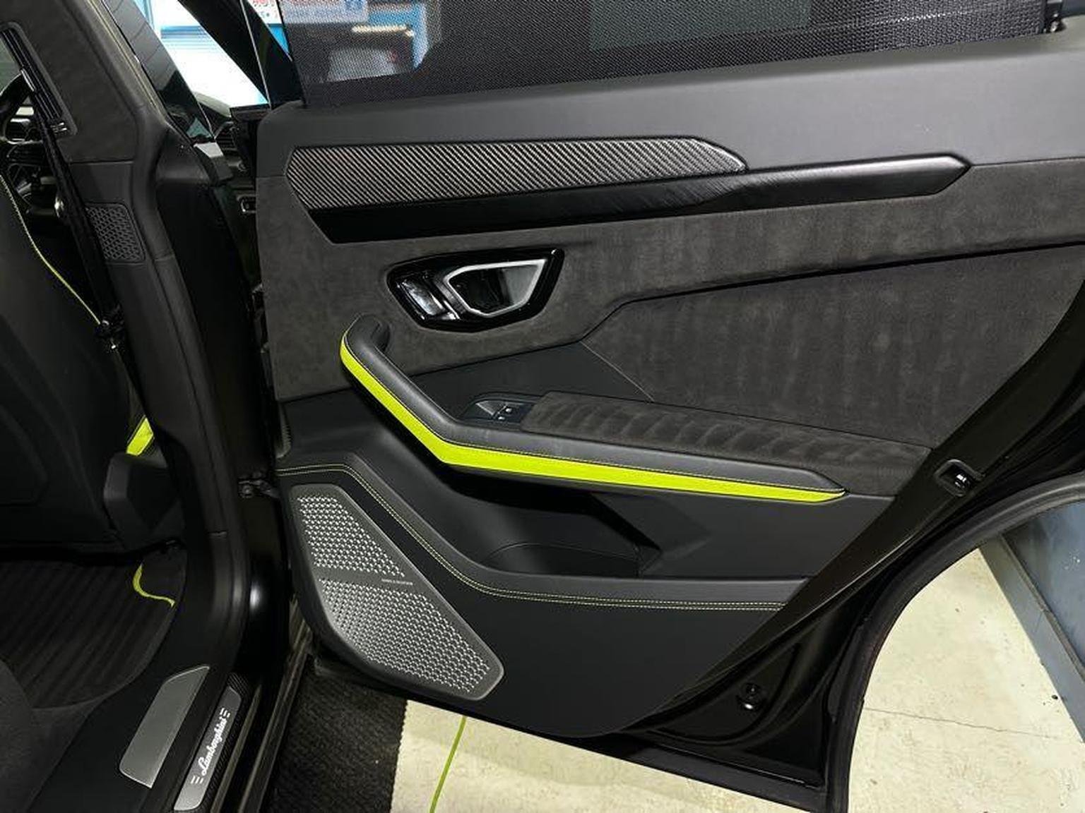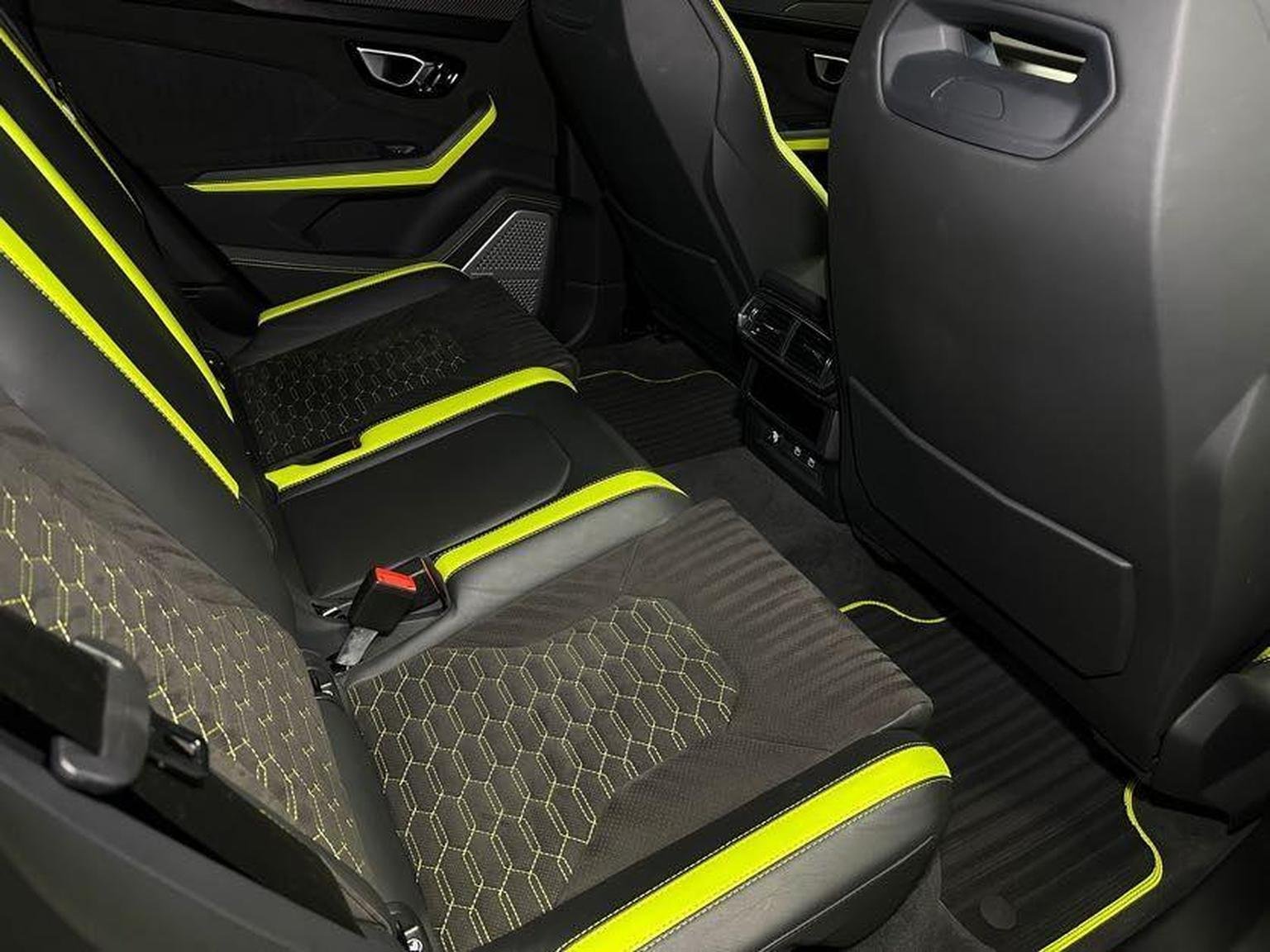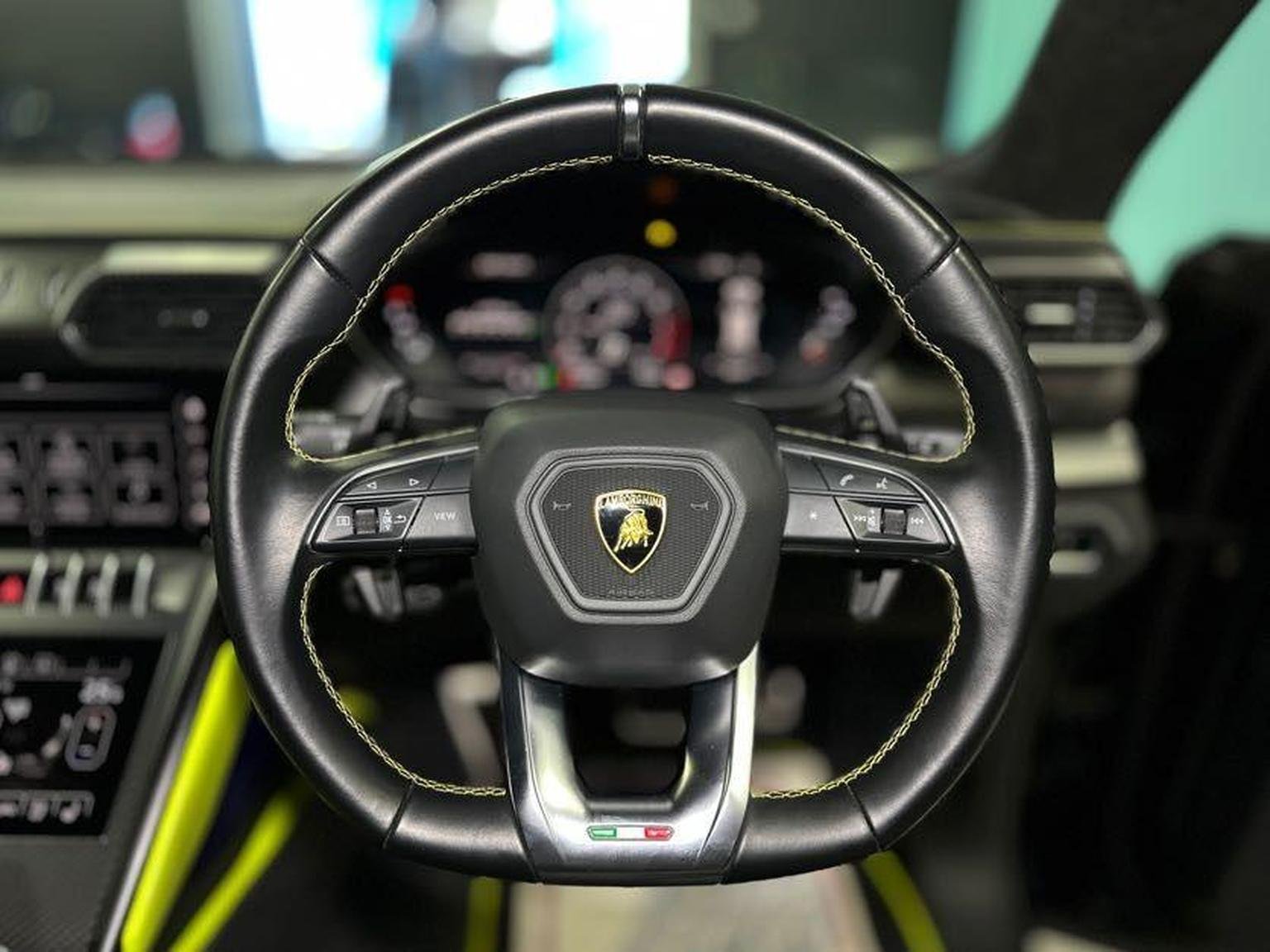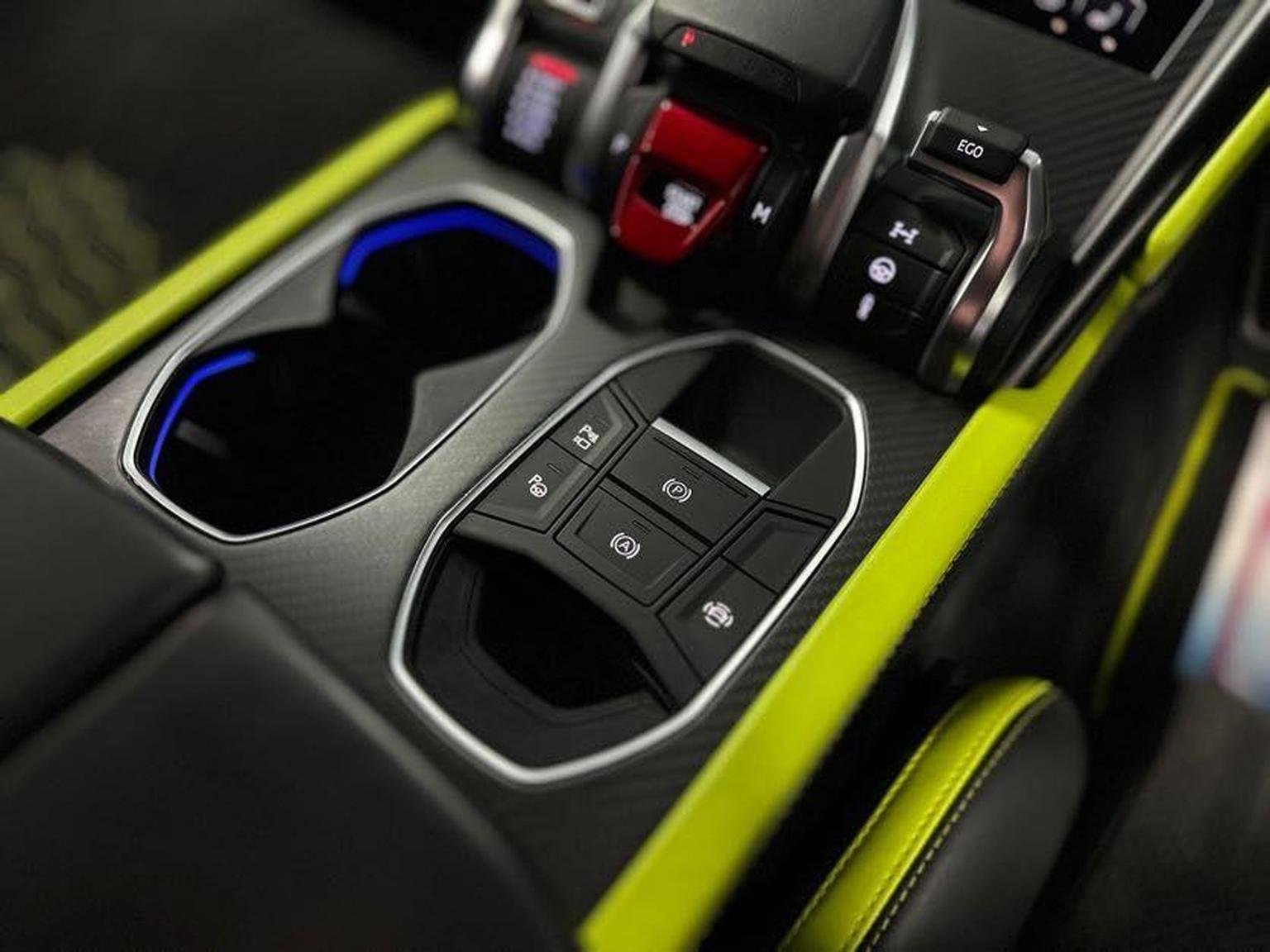 Cutting-edge technology includes a 3D Bang & Olufsen sound system for an immersive audio experience. A panoramic roof floods the cabin with natural light, and the park assistance package ensures effortless manoeuvring. Lamborghini puddle lights and a tracker provide added security.