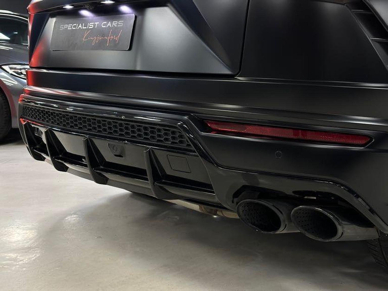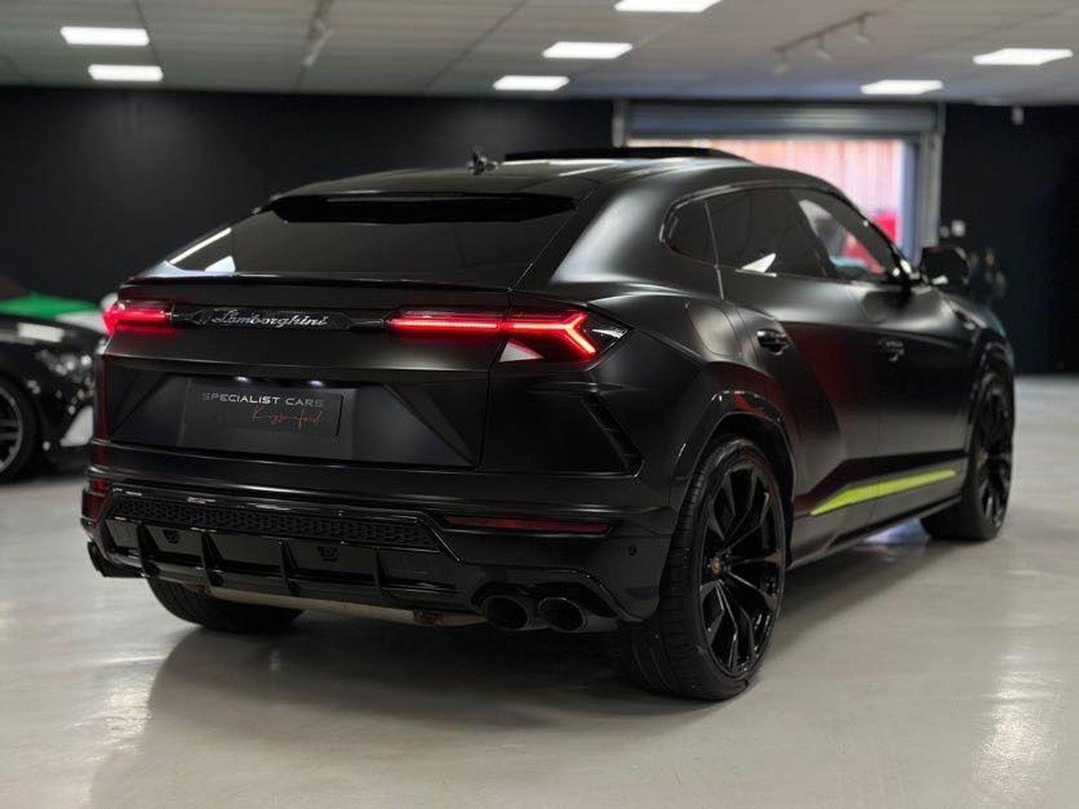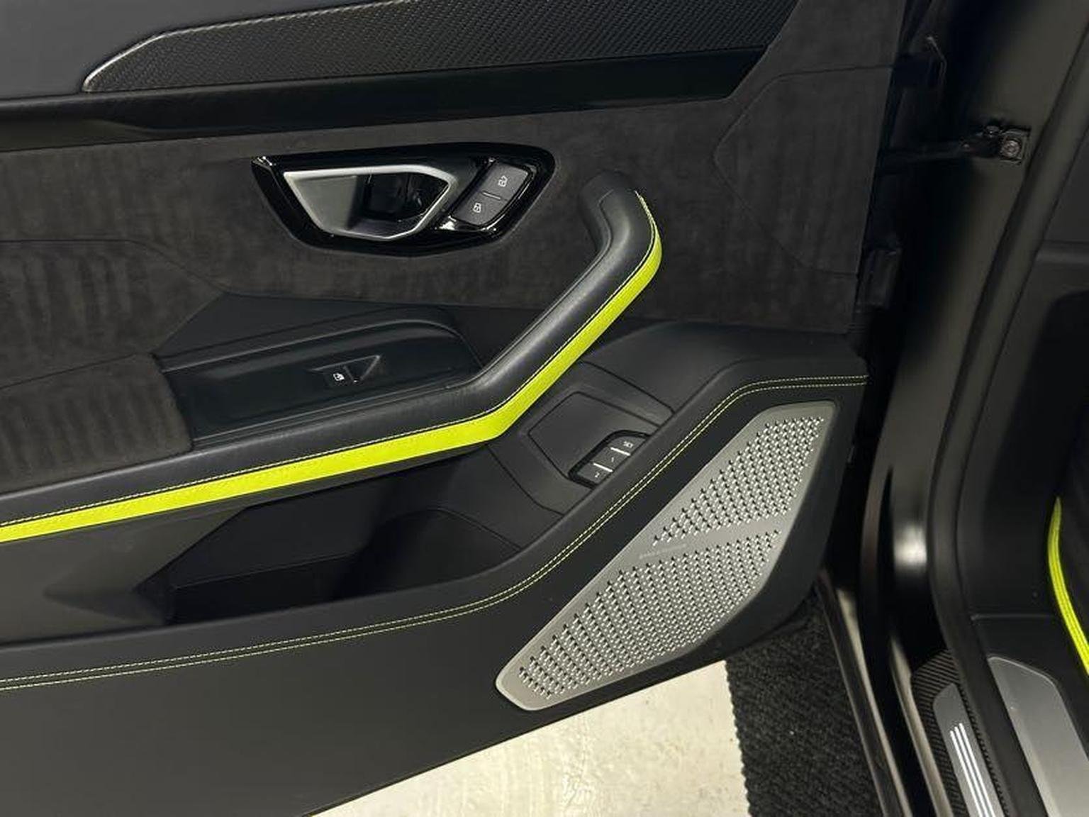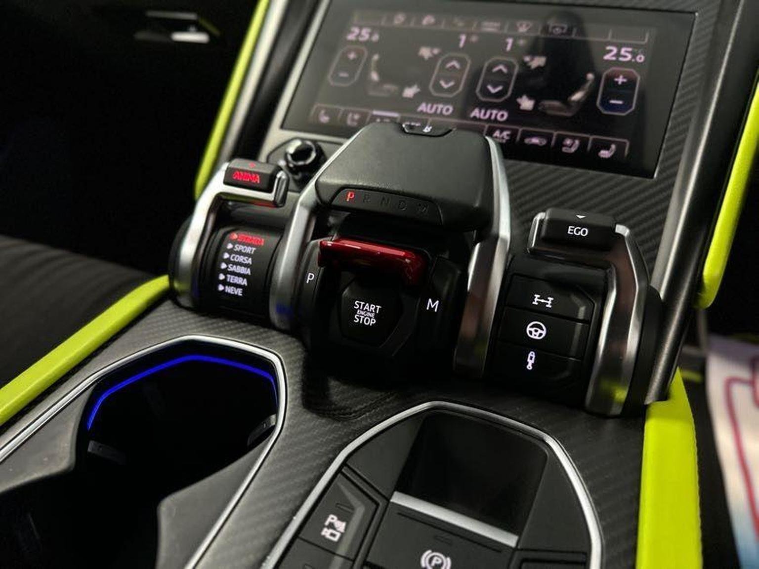 Cutting-edge technology includes a 3D Bang & Olufsen sound system for an immersive audio experience. A panoramic roof floods the cabin with natural light, and the park assistance package ensures effortless manoeuvring. Lamborghini puddle lights and a tracker provide added security.