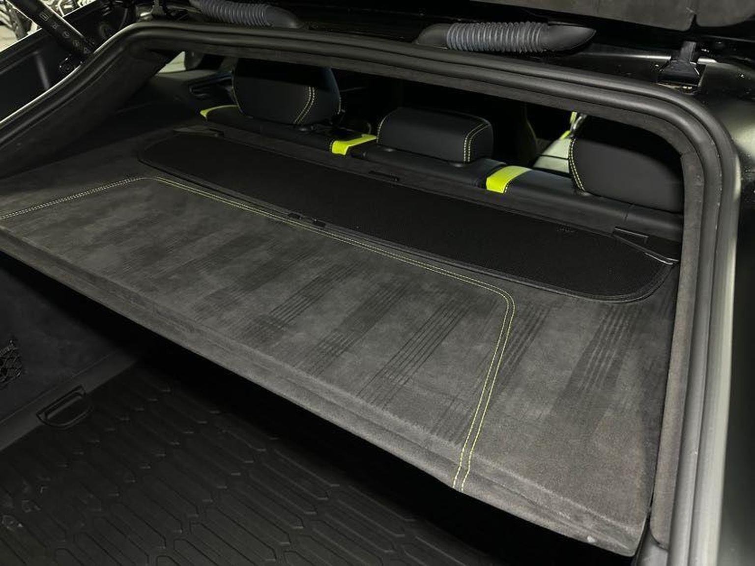 The specification is outstanding, featuring nearly every available option. A full carbon fibre package covers the door mirror housings, rear spoiler, fuel filler cap, rear frame, wheel arches, and kick plates in matt carbon. Full TOPAZ PPF (Paint Protection Film) has been applied from new, ensuring the paintwork remains flawless. Advanced night vision enhances safety, while the hands-free tailgate adds convenience.