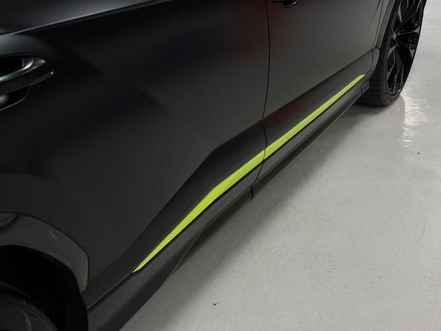 Finished in Nero Noctis Matt with striking Verde Scandal accents, this Urus features the highly sought-after Graphite Capsule Package, giving it a commanding presence. Its bold styling is enhanced by 23” Black Taigete Rims and high-gloss black detailing on the grille and rear diffuser.
