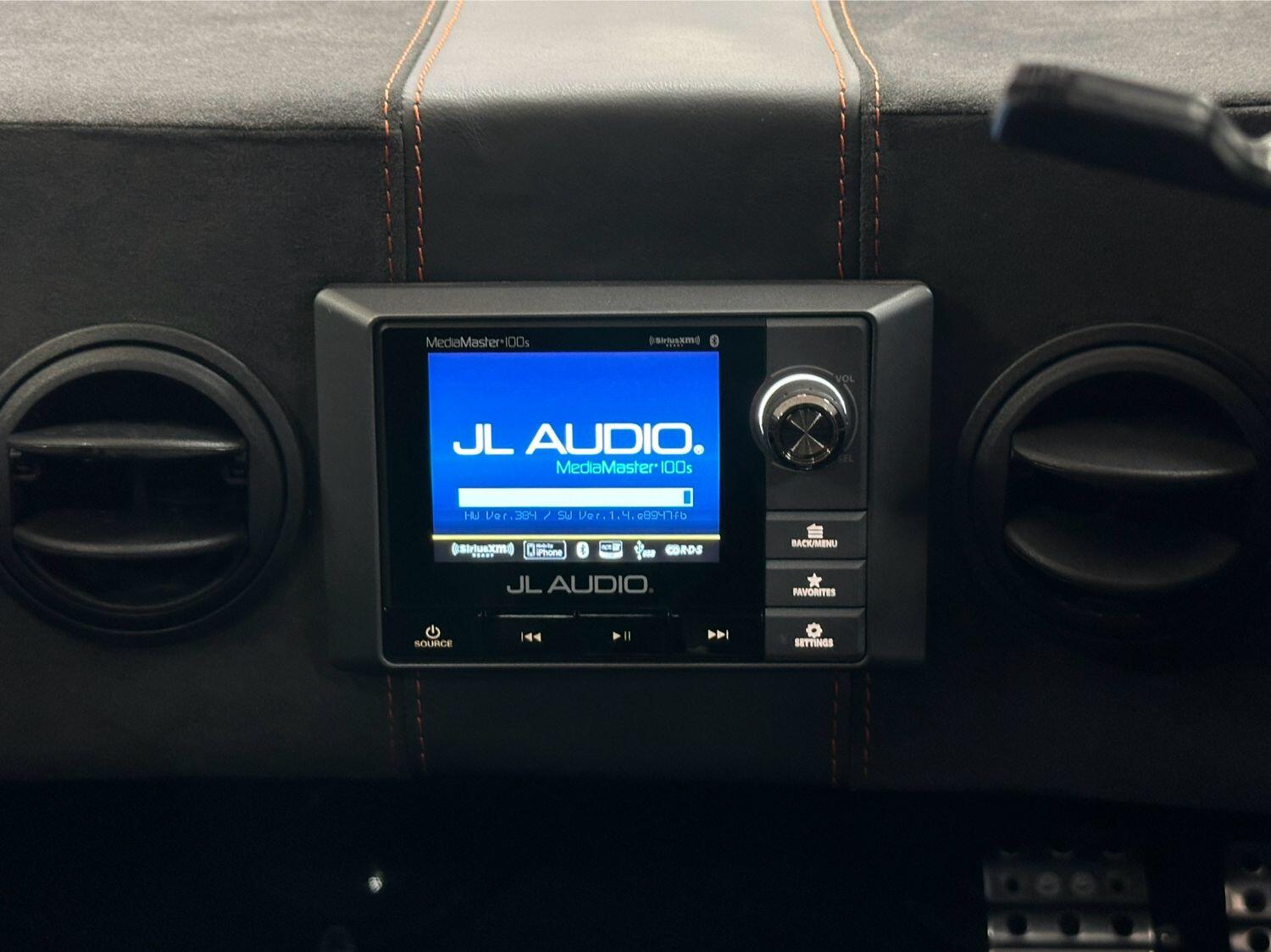 In the audio department, a JD Audio marine head unit is seamlessly integrated with 3-way component speakers. Bass bins and an active 'kicker' sub are strategically placed within the car, all governed by a Live Racing setup, for efficient control over all electronic components.