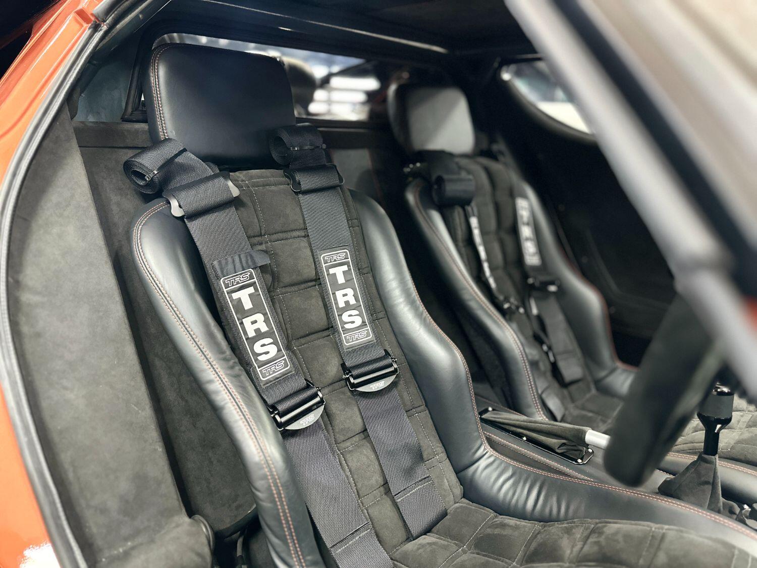 This is the Lancia Stratos HF Volumex built by the famed bespoke UK car builders Retro Power this car was crafted using a Lister Bell kit, recognised for its superior quality and design. The body showcases a unique bronze-gold-orange colour inspired by the Lancia Stratos Zero concept car, its appearance is streamlined with internally mounted fixtures, avoiding awkward exterior-mounted metal catches for a smoother look. The headlights are upgraded to JW Speaker 'projector' type, while the rear lights are aftermarket units from the Lotus Evora, this all adds to the distinctive design. The car is equipped with cooling vents 'ears' for efficient engine temperature control, complemented by custom alloy wheels—8x17in at the front and a substantial 12x17in at the rear. Make no mistake this whole build was over 2 years in the making and the standard and build quality is impeccable.